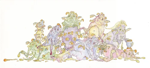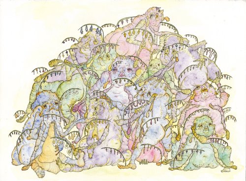 16 color screen print with hand drawn films, TW waterbased and UV ink on Coventry Rag 330 gsm